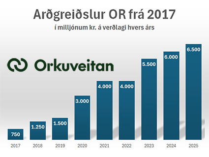 Arðgreiðslur Orkuveitunnar til eigenda sinna frá 2017 nema alls 32,5 milljörðum króna eða um 37,8 milljörðum á meðalverðlagi síðasta árs. Þar af er hlutur Reykjavíkurborgar um 35,2 milljarðar á föstu verðlagi. Við þetta bætist áætluð arðgreiðsla á þessu ári en stefnt er að því að Orkuveitan greiði um 4,2 milljarða.